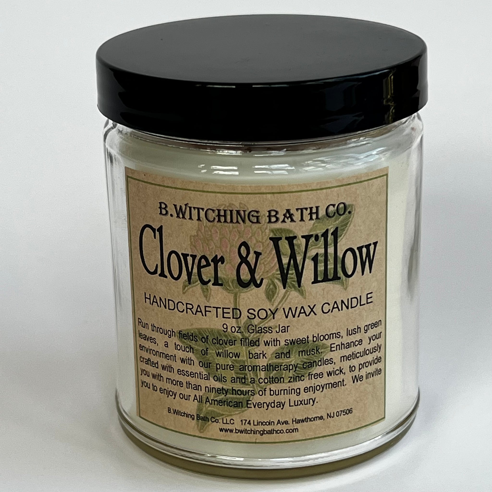 Pure Heaven. Hand crafted soy wax in glass jars. Super long lasting 90 hr burn time. Zinc-free wicks. Each made with only the purest essential oils. Lovely, soothing botanical scents. Choose from 100 Roses, Balsam Fir, Sandalwood, Oak & Moss, Tea Time, Clover & Willow or Citrus & Cinnamon. 9 oz. 3 1/2" x 3.