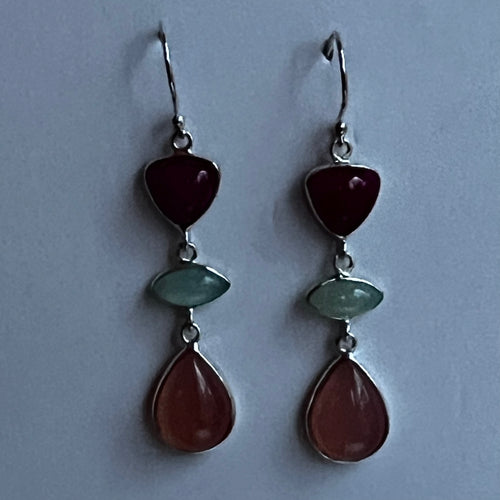 Ruby, Chalcedony and Rose Quartz Drop Earrings