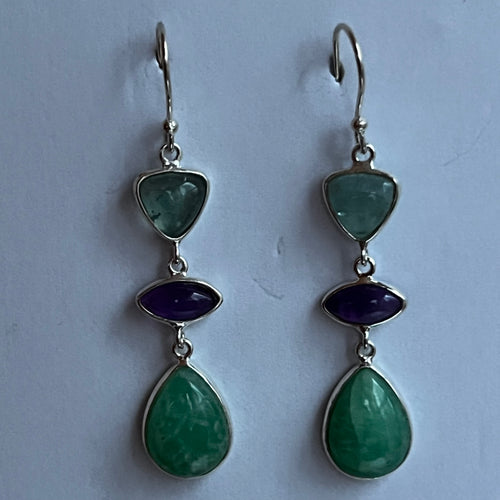 Apatite, Amethyst and Chrysoprase Drop Earrings
