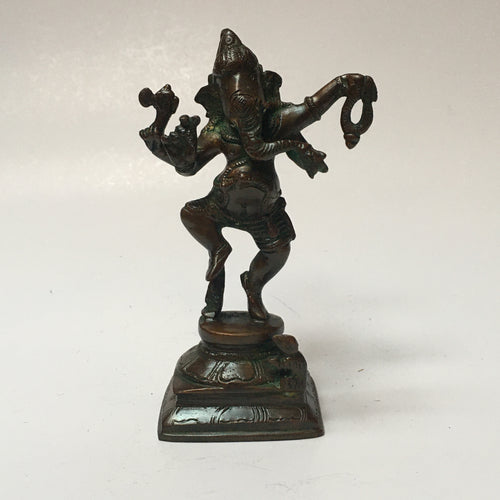 Brass Ganesh Statue Inlaid with Turquoise, Coral & Lapis
