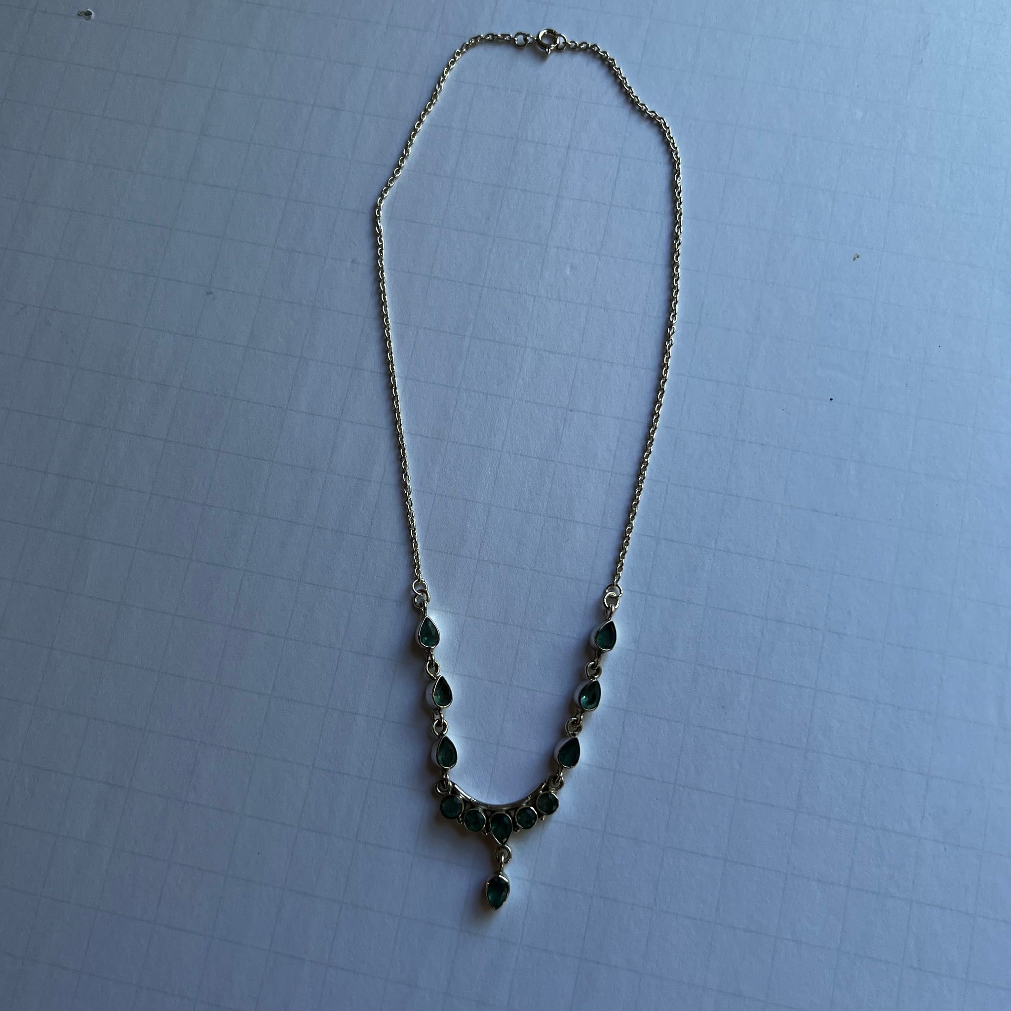 Apatite necklace. Delicate faceted pear-shaped stones on sterling chain. Balance and centering. Sterling silver. 16" chain.